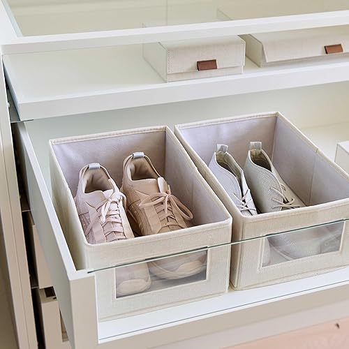 LOVE IT STORE IT - Premium - 2 pièces Boite a chaussure - Empilable - Avec fenêtre - Rangement de chaussures protégé contre la poussière - Lot de 2 - Beige - 34x23x15 cm