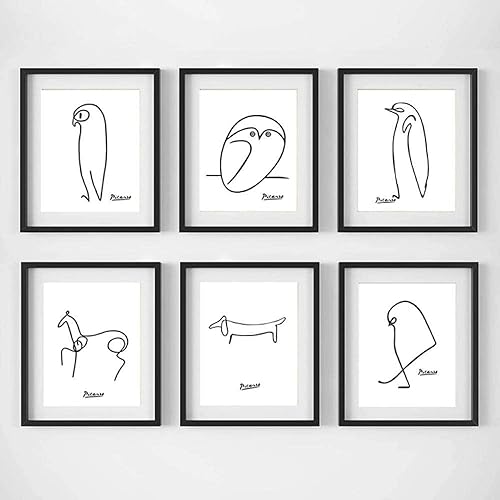 Art Mural Minimaliste Nordique Picasso Animaux Affiche Dessin Au Trait Abstrait Toile Tableau Art Peinture Scandinave Tableaux Decoration à La Maison 20x30cm×6pcs sans Cadre