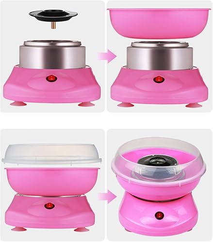 Machine à barbe à papa 500 W Mini maison DIY Machine à bonbons 220 V avec 10 bâtonnets de barbe à papa et 1 cuillère doseuse (25x25x16 cm, Rose)