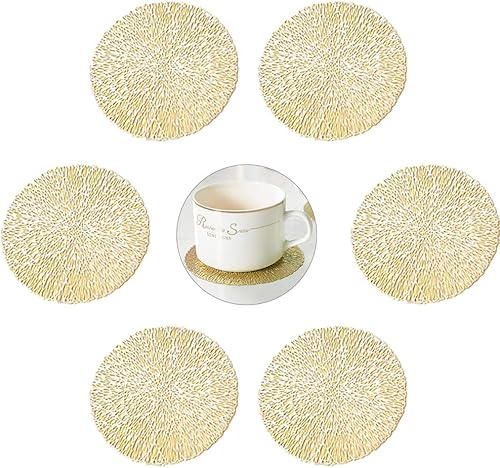 GLOBALDREAM Dessous de Verre, 6 pièces Dessous de Verres Ronde sous Verre Dessous de Verre Vinyle pour Table Salle à Manger Cuisine (Doré, 10cm)