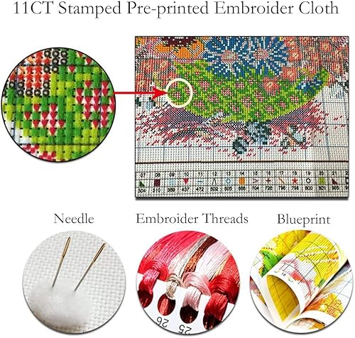 OWN4B Kit de broderie au point de croix estampillé, belles fleurs imprimées 11CT 36,1 x 46 cm (fleurs)