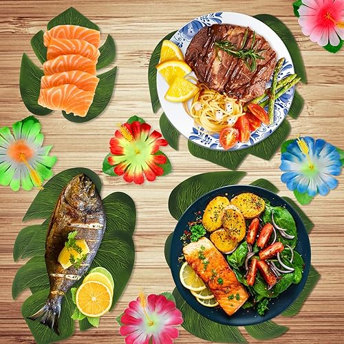 Yojoloin 128 Pièces Hawaïenne Luau Table Jupe Set de Décoration,Fleurs hawaïennes,Guirlandes de Luau Bannières,Pailles Papier de Fruits 3D pour Beach Summer et fête à thème hawaïenne