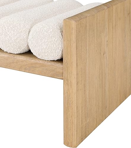 Meridian Furniture Waverly Collection Moderne | Banc Contemporain avec Finition Riche en Bois Massif, Tissu bouclé Luxueux, d'hévéa, crème, 52' W x 19' D x 18' H