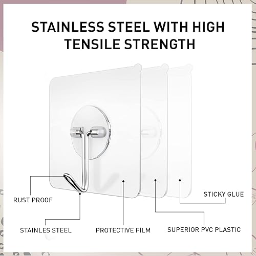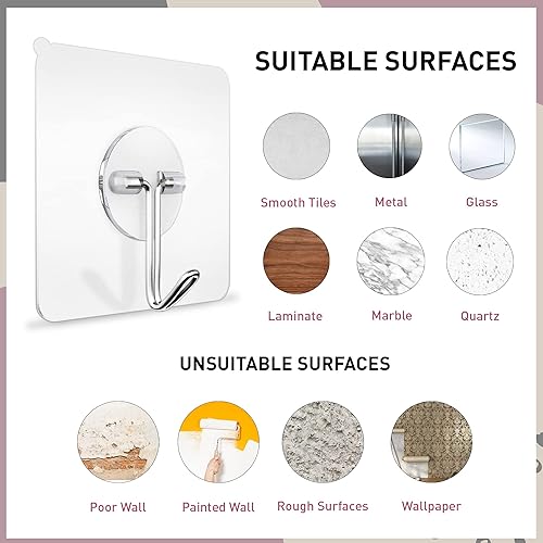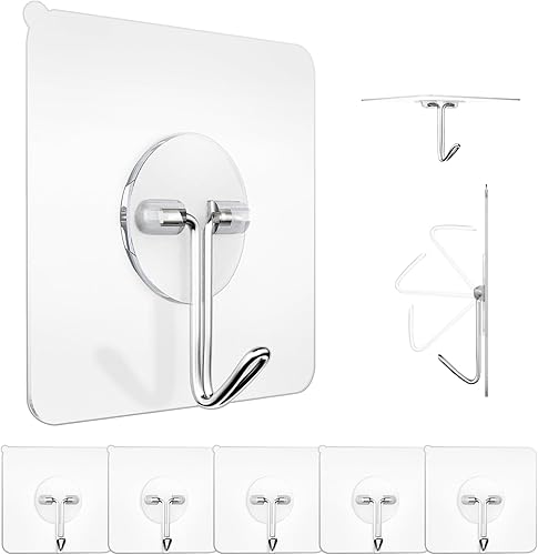 Gloxian Crochet Adhesif Mural 10 Pcs, 6 x 6cm – Crochet Mural en Acier Inoxydable pour Maison, Cuisine, Salle Bain – Charge Maximale : 5 kg - Idéal pour Serviettes, Peignoirs et Vêtements