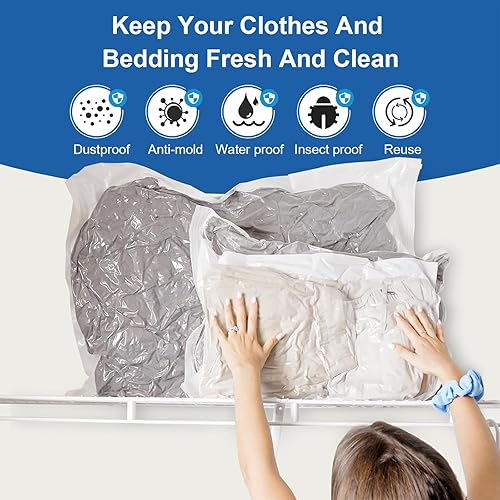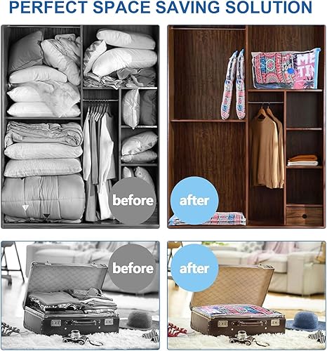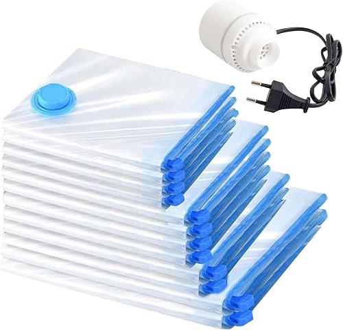 Sacs de Rangement Sous Vide, 12 Pièces Sac Sous Vide Vêtements avec Pompe USB, Réutilisables et Portables, Voyage Accessoires, Compactor Rangement Sous Vide, Idéal pour Vêtements et Voyages
