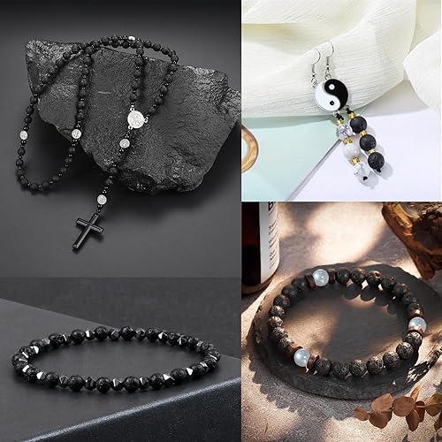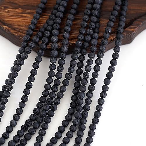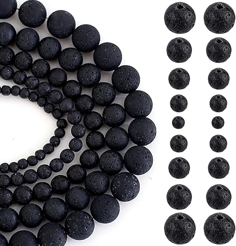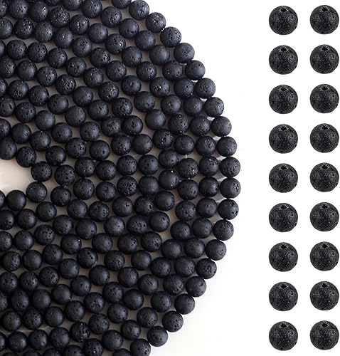 HERZWILD Lot de 470 perles rondes en pierre de lave noire naturelle pour fabrication de bracelets, colliers, bijoux (8 mm)