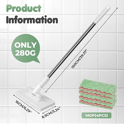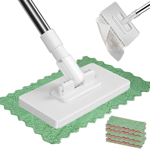 Balai Serpillière, Serpillère Microfibre Plat Rotatif 360° Balai Plat, Vadrouille de Mains Libre pour Nettoyage de Sol avec 4 Serpillères, Kit de Lavage pour Sols Délicats (1 PCS)