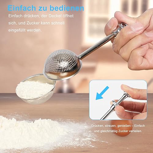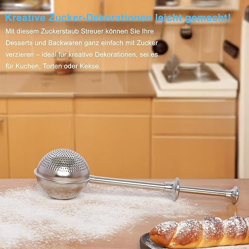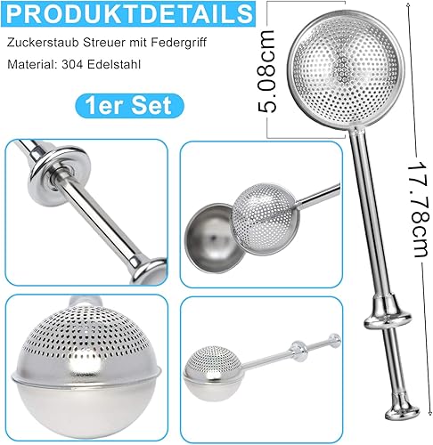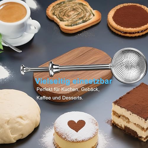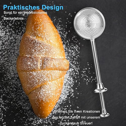 Plumeau à farine pour pâtisserie, saupoudreur de sucre en poudre avec poignée, shaker à sucre en acier inoxydable, plumeau pour pâtisserie, infuseur à thé pour thé en vrac, saupoudreur de cacao