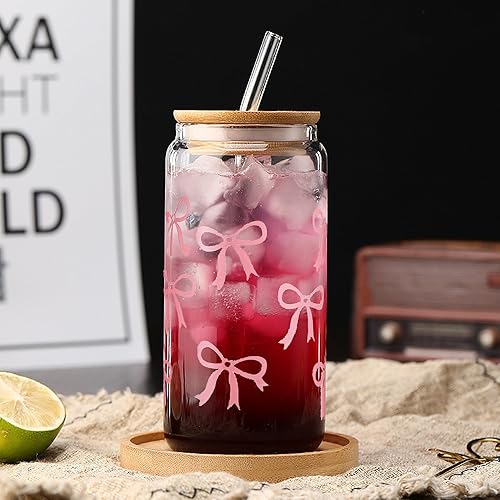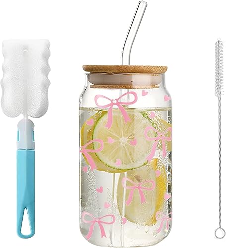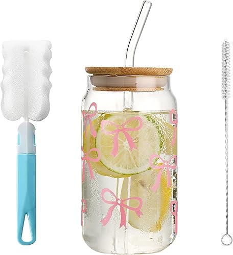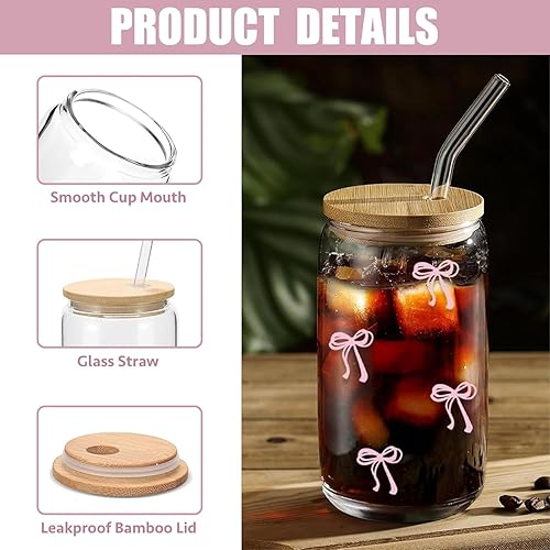 Jiahuade Gobelet en Verre avec Couvercle et Paille,480ml Verre Bubble Tea,Tasses à Café Glac,verre Canette avec Couvercle et Paille,Bubble Tea Cup,Verres à Cocktail,pour Jus,Café,Cocktail,Soda (B)