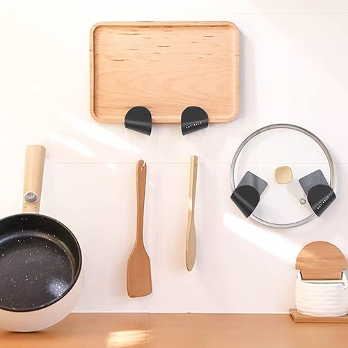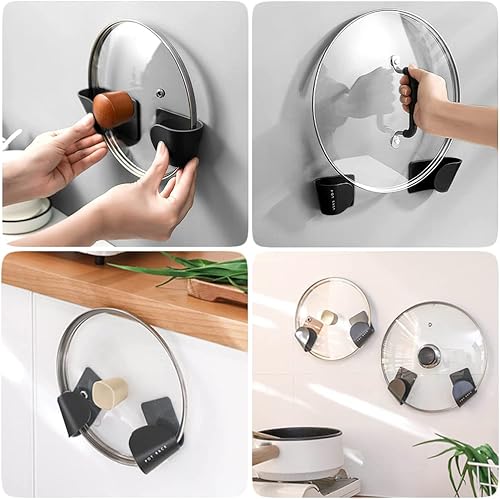 10pcs Support Couvercles Casseroles Mural Auto Adhésif Porte Couvercle Cuisine Range Couvercle Support de Couvercle de Pot Montage Mural Porte-Couvercles pour Maison Ustensiles de Cuisine Noir