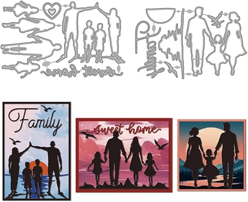 MAYJOYDIY Matrices de Découpe pour Maison Familiale Matrices de Découpe en Métal Sweet Home Silhouette de Famille Pochoirs de Gaufrage pour Bricolage Artisanat en Papier Scrapbooking Cartes Décoration