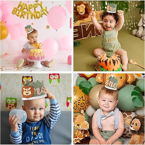 dinghaole Couronne de premier anniversaire pour bébé, chapeau de lion vert sauvage, chapeau d'anniversaire, chapeau de 1er anniversaire, convient pour les fêtes d'anniversaire d'enfants, les carnavals