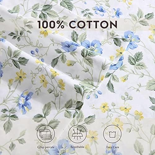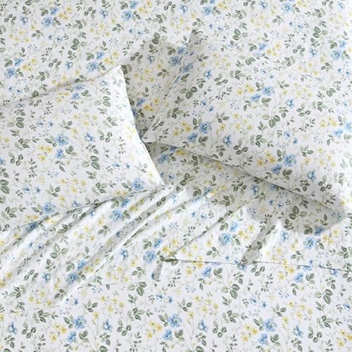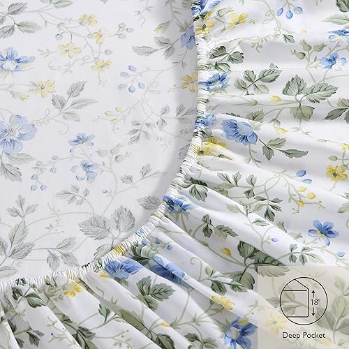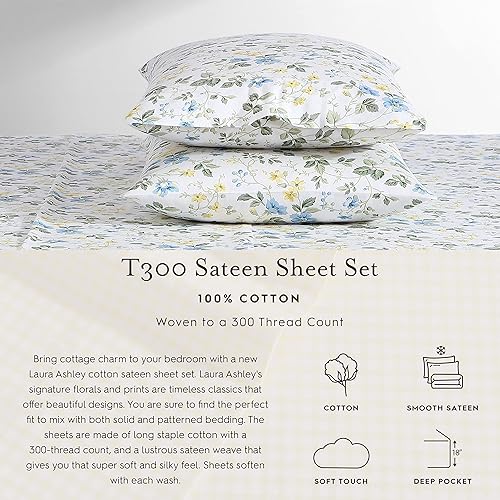 Laura Ashley Accueil Parure de lit en Satin de Coton Doux pour Grand lit – Élégante décoration d'intérieur Lisse et Respirante (Meadow Floral Blue, 4 pièces, Grand lit)