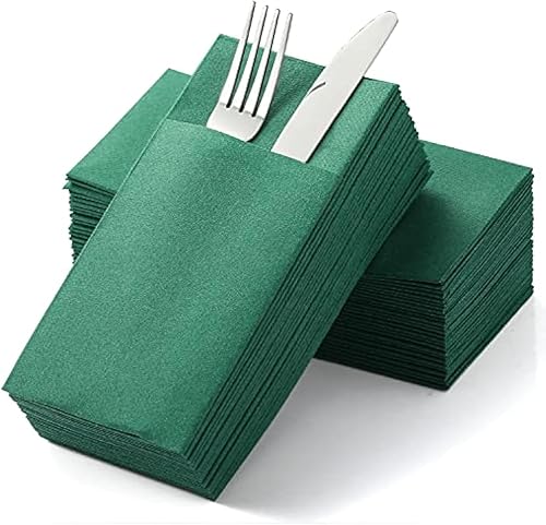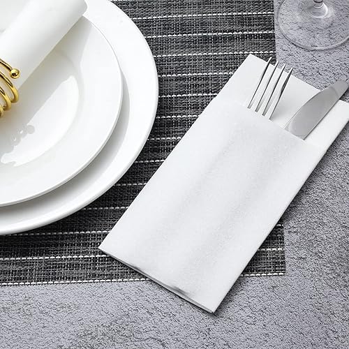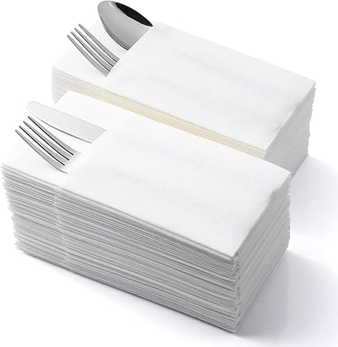 MORGIANA Lot de 100 Serviettes en Papier Jetables au Toucher Lin avec Poche Intégrée pour Couverts, pour Mariage, Noël, Thanksgiving, Anniversaire ou événements Blanc