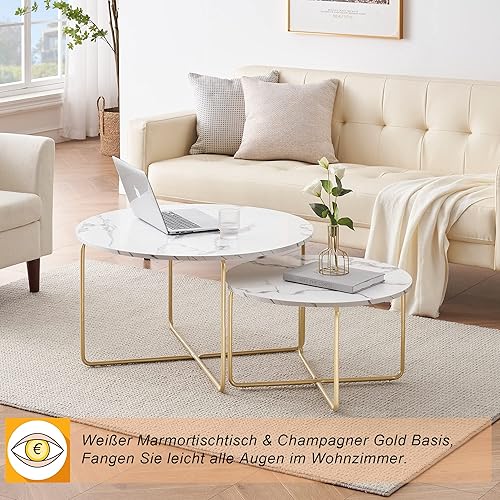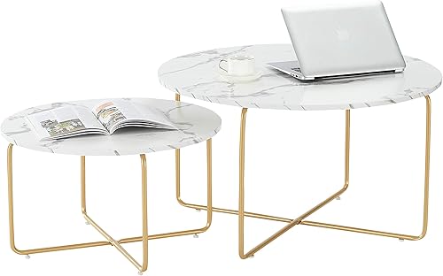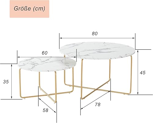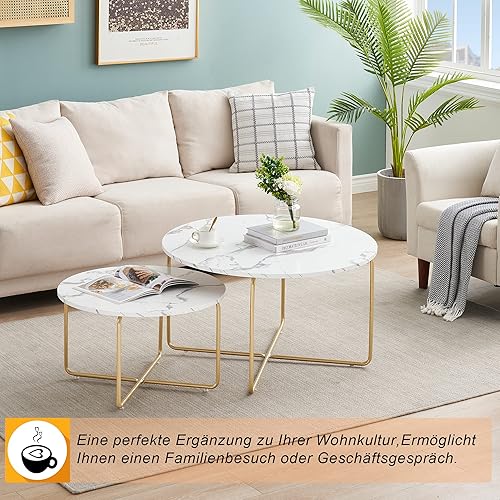 Lot de 2 tables basses en marbre - Table basse ronde - Blanc - Facile à monter