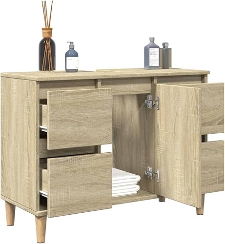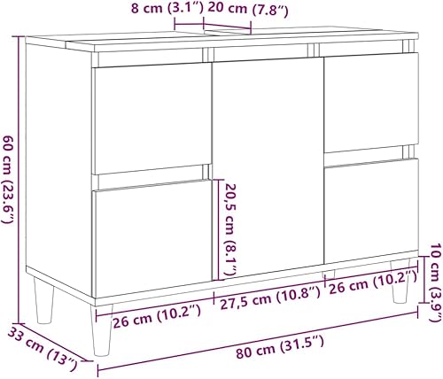 vidaXL Meuble d'évier chêne Sonoma 80x33x60 cm Bois d'ingénierie, Armoire d’évier de Salle de Bain, unité d’évier de Salle de Bain, Armoire de lavabo