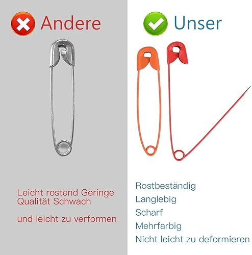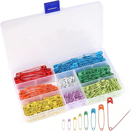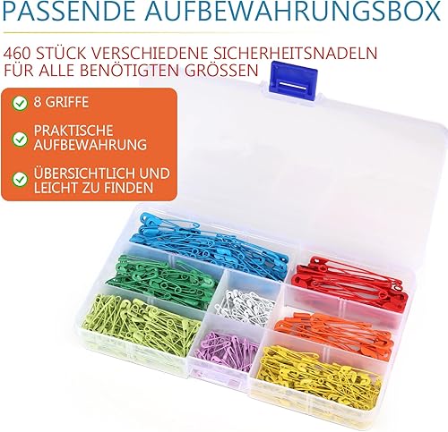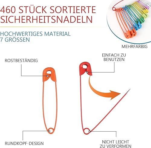 Lot de 460 épingles à nourrice - 7 tailles de 19 mm à 54 mm - Résistantes à la rouille - Grandes épingles à nourrice colorées et durables - Pour le bricolage, les vêtements, l'artisanat, la couture