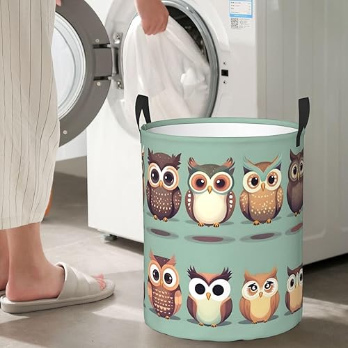Paniers à linge avec motif chouettes de dessin animé, panier à linge, panier à linge, panier de rangement pour vêtements