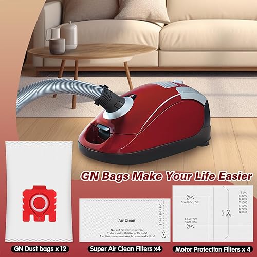Lot de 12 Sacs à Poussière Pure GN 3D Compatibles avec Miele GN pour Aspirateurs Classic C1 Complete C2 Complete C3, S2 S4 S5 S6 S8 Series avec 4 + 4 Filtres Air Clean