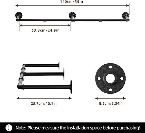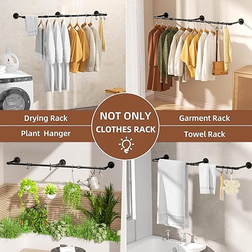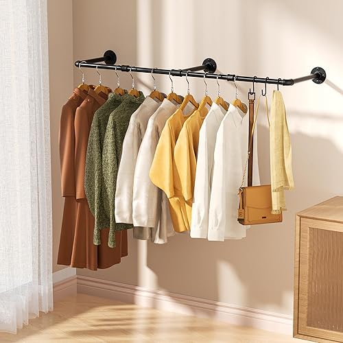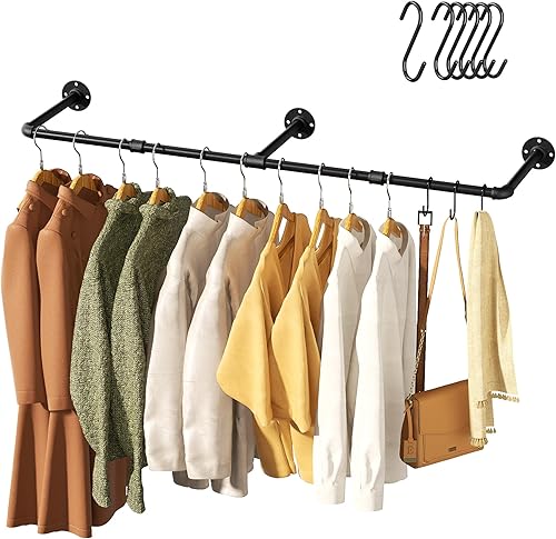 Porte-vêtements vintage, porte-vêtements mural industriel de 55 po, cintre robuste peu encombrant, paquet de 1 avec 6 crochets en S