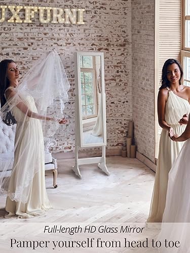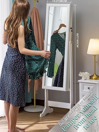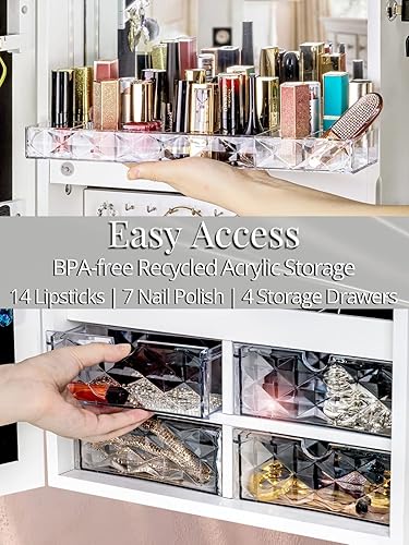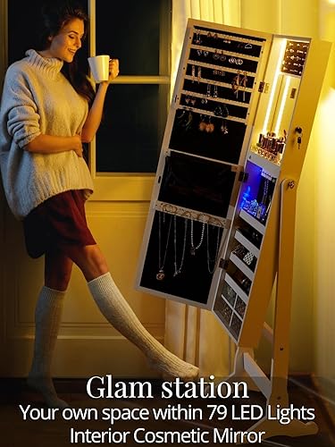 LUXFURNI Armoire à Bijoux à LED avec Miroir verrouillable et Grand Organiseur de Rangement avec tiroirs (Blanc)