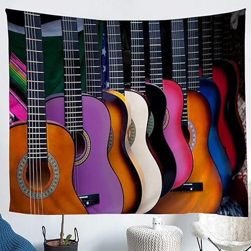 Tapisserie Murale Musique 130x150 cm Tenture Murale Guitare Tapisserie Tissu 3D Impression Decoration Art pour Maison Salon Chambre Dortoir a-6763