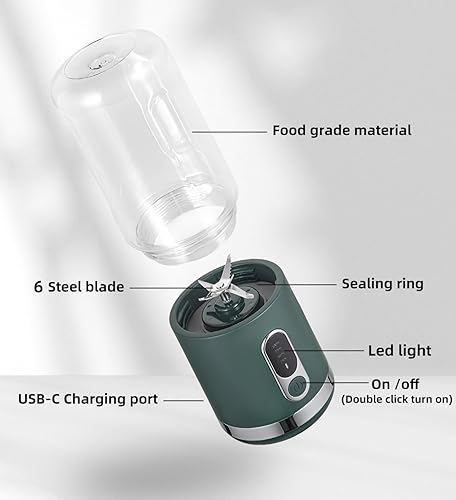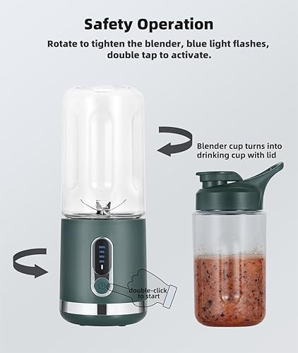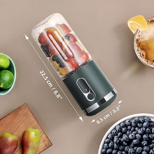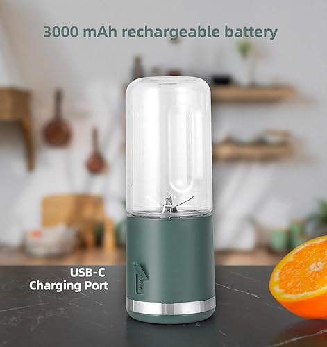 Blender Portable, Mélangeur Personnel pour Shakes et Smoothies, 3000mAh USB-C Rechargeable 450 ml Tasse à Jus avec 6 Lames et Couvercle, Mixeur Portatif pour Cuisine, Salle de Sport et les Voyages