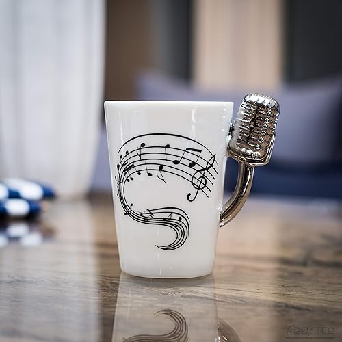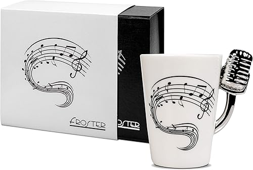 Froster Microphone Tasse dans une boîte cadeau noire, Vintage Tasse Ceramique 220 ml, Cadeau Musique pour Musicien Chanteur