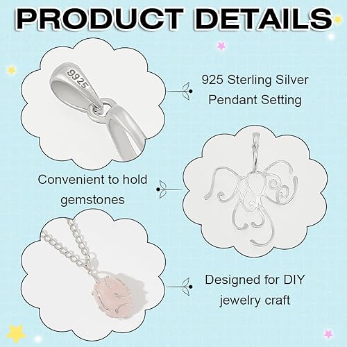 BENECREAT pendentif en Argent Sterling 925 à Griffes Irrégulières Vierge Base de Pendentif Creuse Support de Cabochon avec Chiffon de Polissage pour Pendentif Fabrication