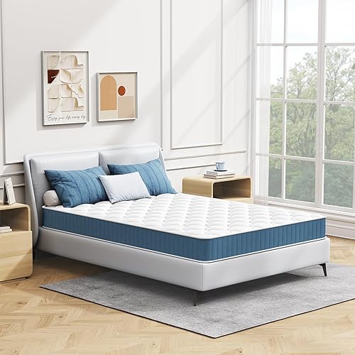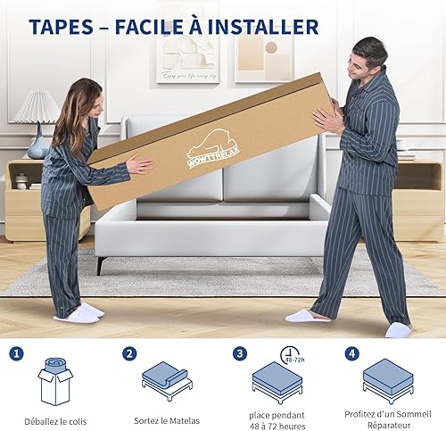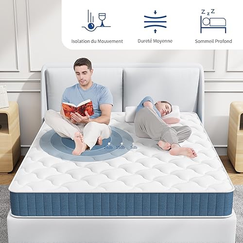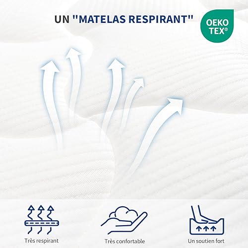 wowttrelax Matelas 140x200, Matelas Memoire de Forme 18cm d'Épaisseur, Confort 9-Zones, Fermeté Moyenne, Tissu Coton Respirant, Durabilité, Oeko-TEX, Bleu et Blanc