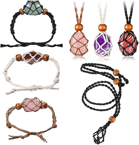 TAIZER 6 Pièces Cordons Collier Porte Pierre Vide Réglable Porte Cage Collier Cristal Filet Porte Vide Cordon Collier Quartz Pendentif Corde Cristal Pierre Brute en Filet Poisson Bijoux de Bricolage