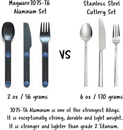 Magware Lot d'ustensiles de camping magnétiques – Couverts de voyage portables et réutilisables en métal avec un étui pour camping, pique-nique,Couteau, fourchette et cuillère (15 pièces)