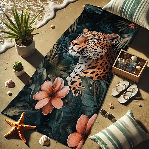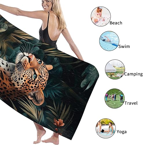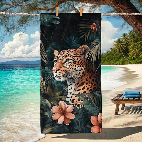 Serviette de plage en microfibre à motif léopard tropical – Serviette de bain à séchage rapide, absorbante, douce et anti-sable, légère, pour les vacances, la piscine, la salle de sport, l'extérieur