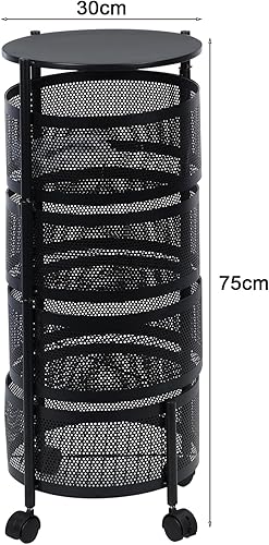 PERZOE Etagere Rangement,3/4/5 Couche Rangement Cuisine,Support De Stockage De Fruits Rotatif 4 Roues,étagère de rangement pour fruits et légumes roulettes et matériau métallique en acier inoxyd