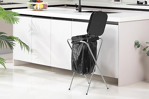 ECHTWERK Support pour sac poubelle avec couvercle – Porte-sac robuste pour sacs de 70 à 100 litres, avec anneau de fixation, cadre en acier et couvercle en plastique, 38 x 36 x 75 cm, noir