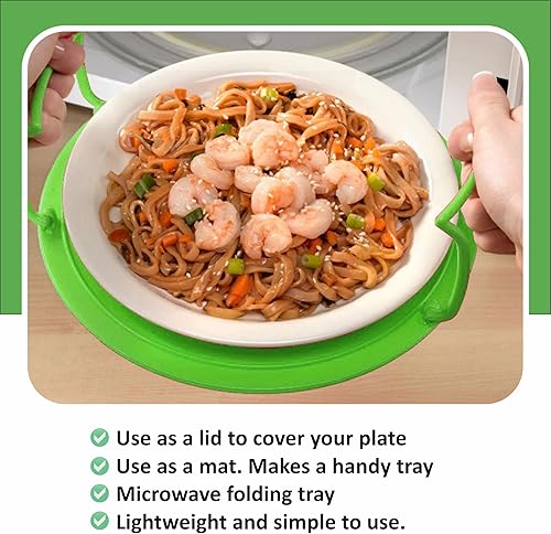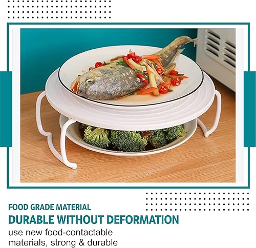 Plateau de four à micro-ondes empilable pour assiettes et plats chauds avec poignée 4 en 1 antidérapant pour cuisson à la vapeur, support pliable à double niveau, couvercle de rangement de cuisine (1