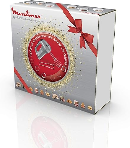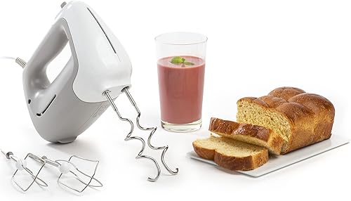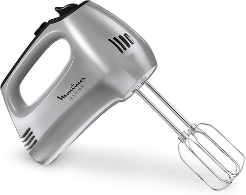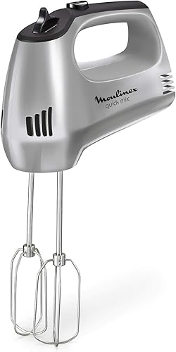 Moulinex Prep'Mix Batteur Electrique 5 Vitesses 2 Fouets 2 Crochets Pétrisseurs Inox Batteur Polyvalent et Ergonomique Accessoires Compatibles Lave-Vaisselle 450 W HM450B10 Blanc