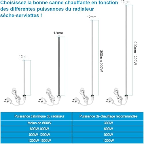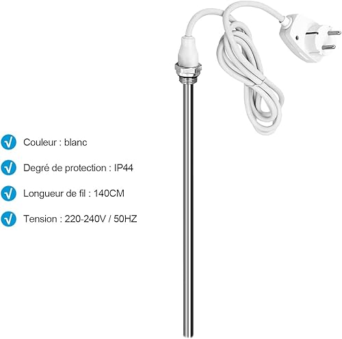 Heilmetz Élément Chauffant pour Radiateur de Salle de Bain, Thermoplongeur pour Sèche-Serviette Électrique avec Interrupteur Marche/Arrêt 600W