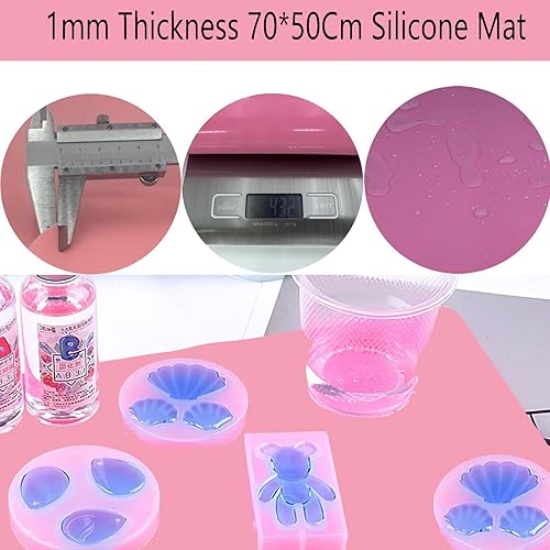 DeJivsin Tapis en Silicone 70 cm x 50 cm Rose, Tapis en Silicone Antidérapant, pour la Cuisine, l'école, la Pâtisserie, le Bricolage, la Peinture, Tapis de Cuisson