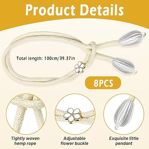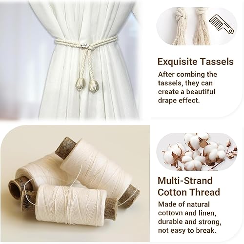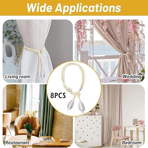 YYUEZHI 8 Pièces Attache Rideau, Embrasse pour Rideaux, Embrasse pour Rideaux, 100cm en Corde Tissée, pour Décoration De Bureau, Domicile, Hôtel (Beige)