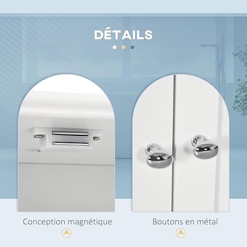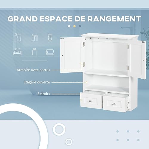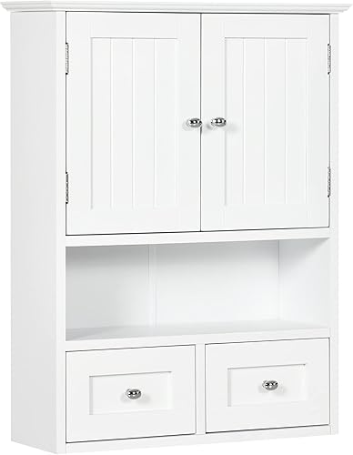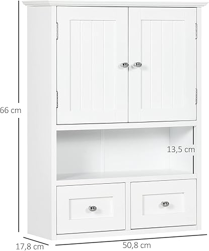 kleankin Armoire Murale de Salle de Bain, Armoire de Toilette, avec Portes Doubles, étagère Ouverte, 2 tiroirs pour Ranger, 50,8l x 17,8P x 66H cm, Blanc