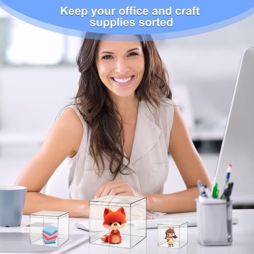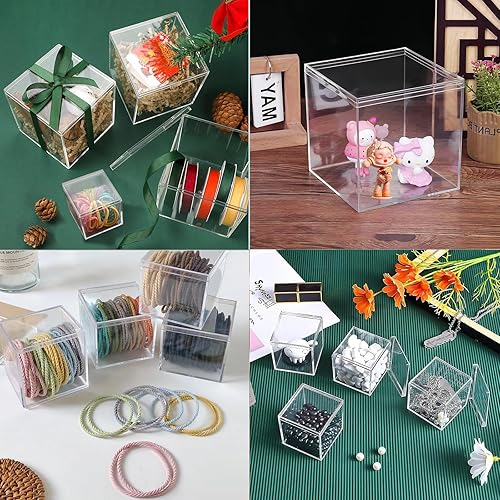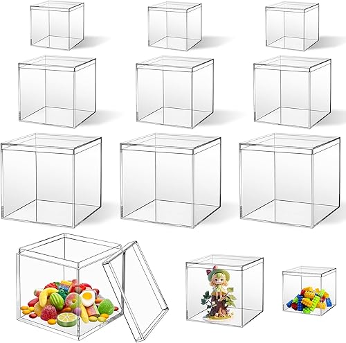 cersaty Lot de 12 boîtes en acrylique avec couvercle transparent pour bijoux, figurines, bonbons, bijoux de cheveux, jouets, etc. (5,5 cm, 7,5 cm, 10 cm, 4 pièces chacune)