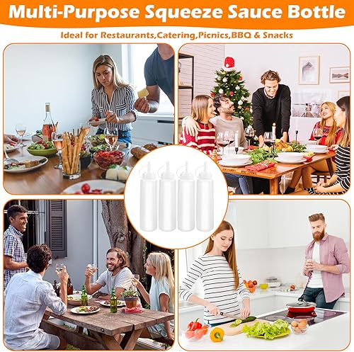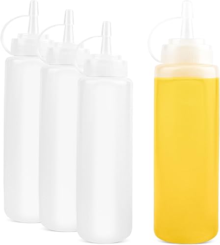 4PCS Bouteille à Condiments,Bouteille à Sauce 8oz,Flacon Sauce avec Capuchon,Presser Les Bouteilles,Flacon Souple Cuisine,Bouteille Sauce pour Pâte de Tomates,Huile d'olive,Sauces,Sirops,Autres épices