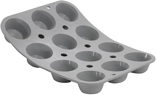 De Buyer - Plaque de 12 Muffins 'Pomponnette' ELASTOMOULE en mousse de silicone - 23,5 x 17,6 cm, diamètre 4,6 cm -, Gris