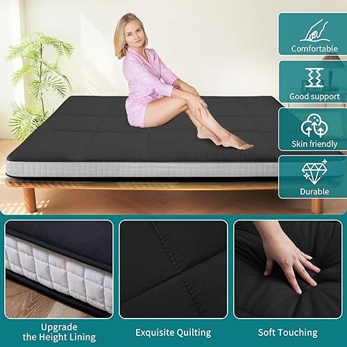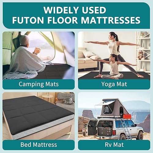 SUNYRISY Matelas futon japonais, matelas de lit épais et pliable, surmatelas enroulable, tatami, chaise longue, lit d'invité, pour camping, canapé, voiture, gris, très grand lit