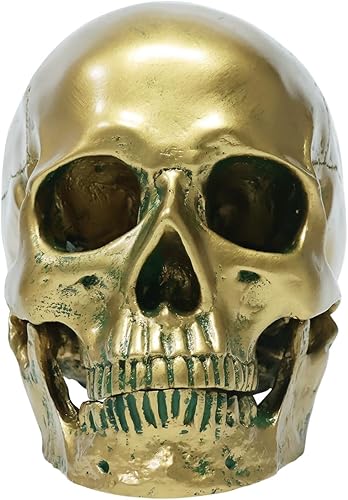 ECYC 1:1 RéSine ModèLe De CrâNe Humain Halloween Accessoires De DéCoration De La Maison, TêTe De CrâNe De ModèLe MéDical De FidéLité pour l'enseignement d'art Medica, Bronze