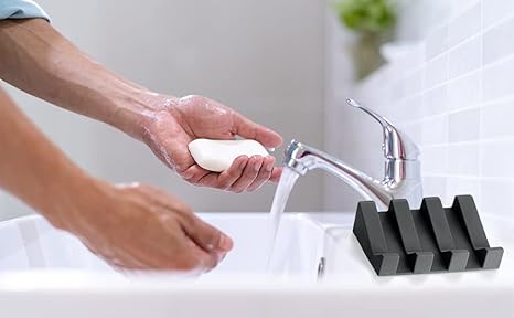 Porte-savon en silicone au design minimaliste, porte-savon pour salle de bain, porte-éponge pour cuisine, porte-savon pour douche (noir)