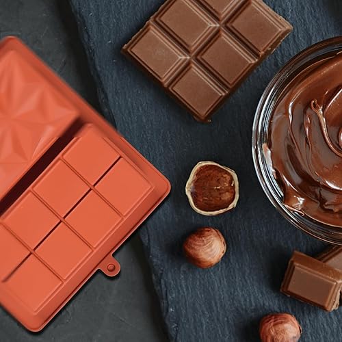 UieaMsio Moule Tablette Chocolat,Lot de 2 Moules À Barres De Chocolat Profonds En Silicone,Mini Moules pour Chocolats,anti-adhésif, moule en silicone marron