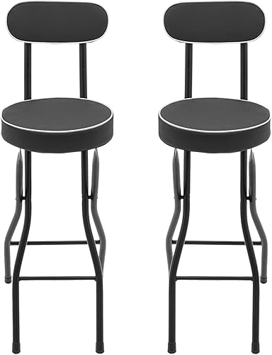 Qussse Lot de 2 tabourets de bar pliables - Chaises hautes rembourrées et portables avec dossier - Jusqu'à 125 kg - Pour l'extérieur, le camping, la cuisine, le magasin, le café
