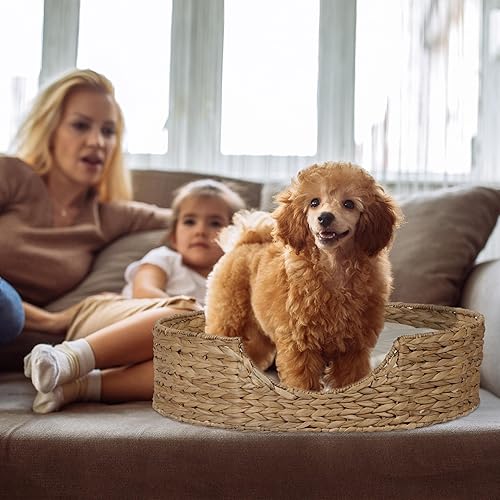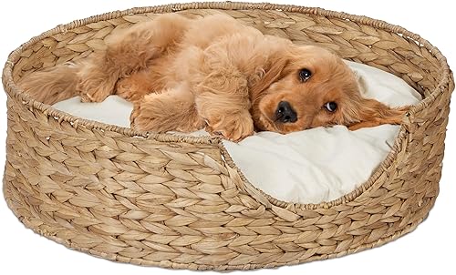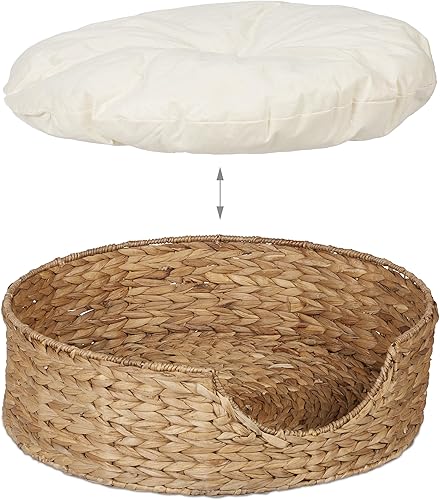 Relaxdays Couchage pour Chien et Chat, Rond, HxD : 15x49 cm, Petite Corbeille pour Votre Animal, zostère, Nature - crème